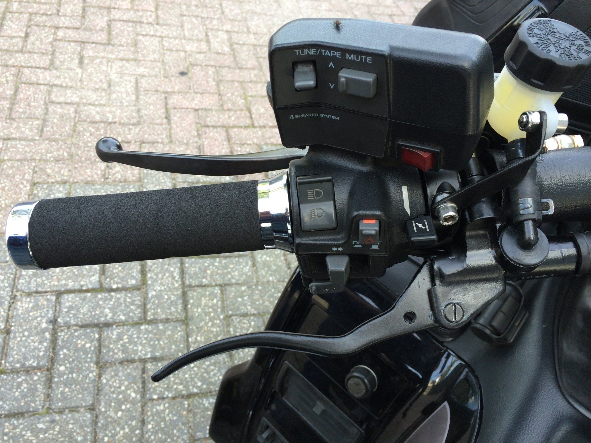 Daarnaast kan ik met 1hand, mocht dit nodig zijn in geval van bv. een noodsituatie, tegelijkertijd de rem- en koppelingshendel bedienen.Tevens is mijn motor voorzien van het zogenaamde combined braking systeem, iets wat het remmen gemakkelijker maakt. De normale koppeling zit nog steeds (afgekoppeld) op de originele plek. Zodoende zie je de aanpassing bijna niet. Ook de schakelaars zijn bij mij gewisseld: de schakelaars voor de knipperlichten zitten meestal aan de linkerkant , maar zitten bij mij nu rechts. Schakelaars die ik tijdens het rijden niet hoef te gebruiken zitten nu aan de linkerkant. Deze zijn fraai verwerkt en je moet wel 2x kijken om te kunnen zien wat er anders aan is dan bij het origineel. De linkerkant van de stuurhelft is voorzien van een hard kunststof handvat. Deze is geschikt voor het bevestigen van de motorprothese. Het rijden en bedienen van de motor is eenvoudig en vergt weinig aanpassingsvermogen.