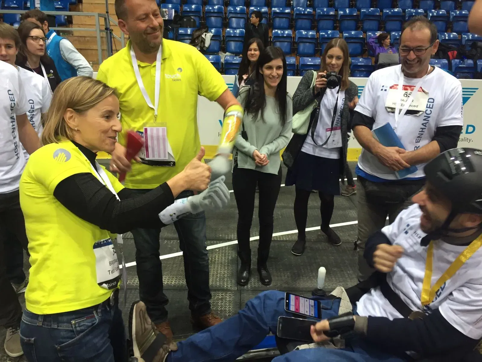 Samen met Claudia Breidbach nam ik deel aan de armprothese race namens Team TouchBionics.