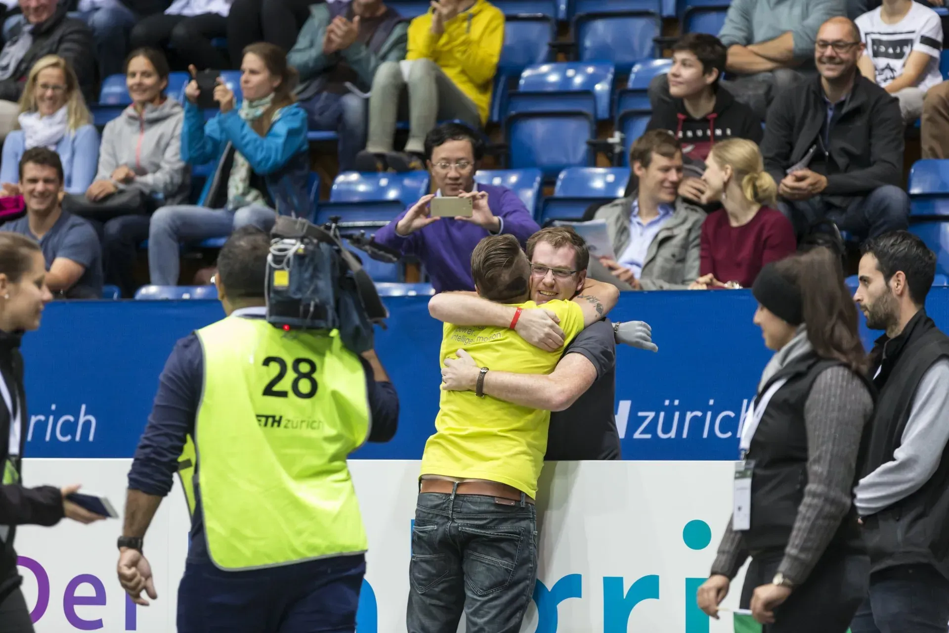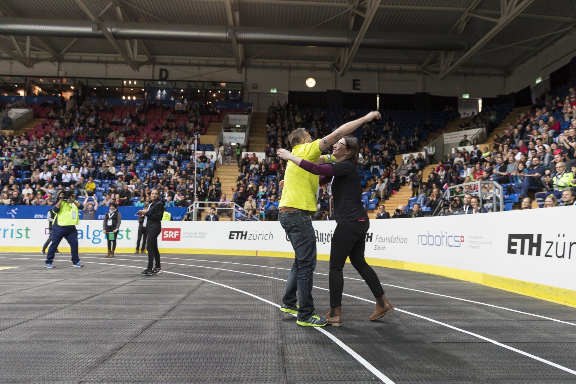 Ruim 5000 mensen in de Swiss Arena in Kloten en div. cameraploegen en presentatoren live op TV .